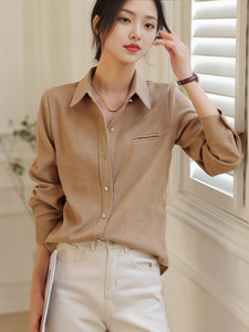 哥家商场同款女装2025秋季宽松外搭长袖磨毛衬衫小众衬衣上衣