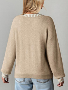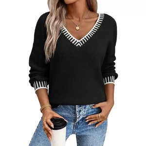 2025跨境新款欧美独特设计感撞色毛衣女秋冬季复古套头针织上衣