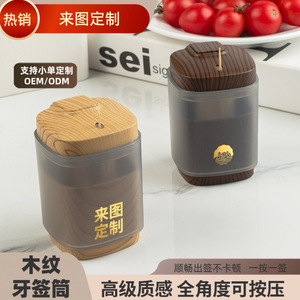 新品牙签盒按压式牙签桶收纳盒家用高档创意牙签筒罐轻奢木纹