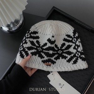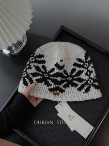 高品质2025新款100%澳洲羊毛复古针织提花文艺风护耳显脸小时尚保