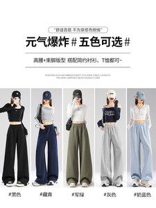 藏青色宽松运动裤女夏季2025新款春秋高腰显瘦卫裤休闲提臀阔腿裤