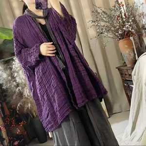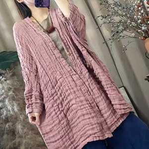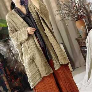 爆款秋装高端肌理亚麻开衫女装复古文艺宽松时尚纯色大开衫