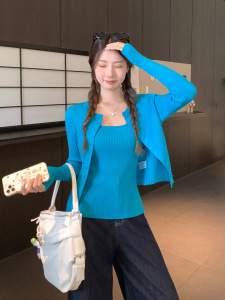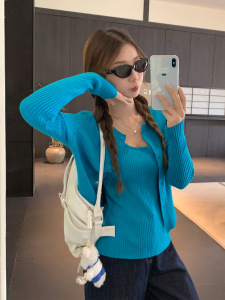韩系纯色坑条半开领排扣长袖针织开衫2025秋季新款修身外套上衣女