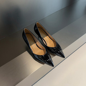 羊皮漆皮尖头细跟浅口单鞋女鞋婚鞋高跟鞋韩版质感气质满满时装鞋