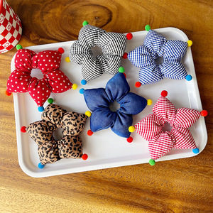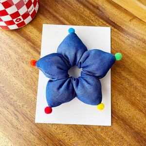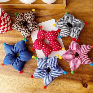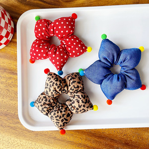 爆款早秋小号甜美充棉五角星发圈丸子头包裹花朵发饰韩版亲子女童