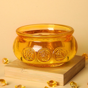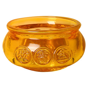 琉璃聚宝盆金黄色元宝水晶工艺品开业礼婚礼乔迁装饰用品摆件