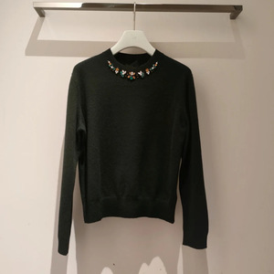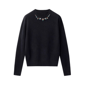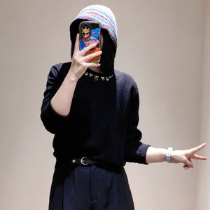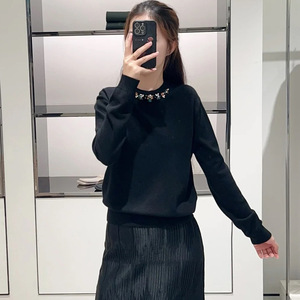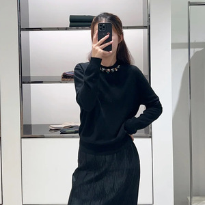 ER纯色圆领长袖钉珠针织衫女2025年秋季新款百搭通勤套衫毛衣上衣
