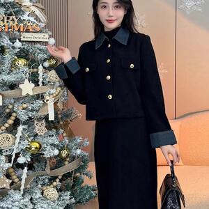 2025新款黑色连衣裙子女秋季小香套装高级感穿搭一整套爆款长裙