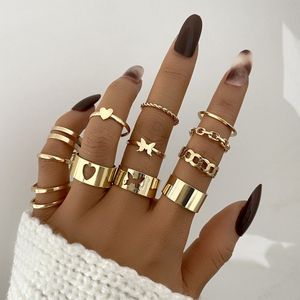 跨境新款蝴蝶指环开口多关节戒指22件套镂空爱心戒指女设计感小众