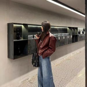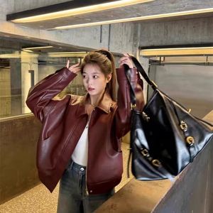 安可拉红皮衣外套女感2025新款美式机车小个子pu夹克上衣