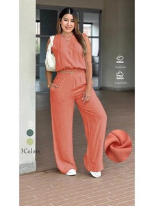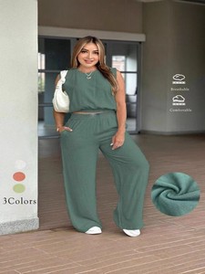 工厂跨境亚马逊新款透气纯色百搭T恤上衣长裤纯色休闲套装欧美女