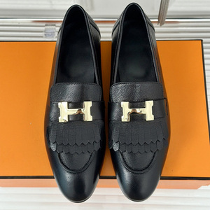 莞产高货~英伦金属扣H单鞋女真皮平跟流苏乐福鞋绒面懒人小皮鞋女
