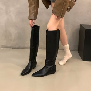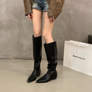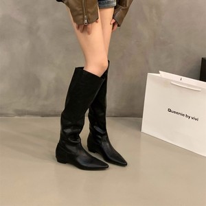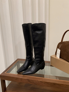 粗跟尖头长筒骑士靴女靴子2025新款秋冬季高筒堆堆靴黑色瘦瘦长靴