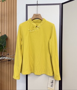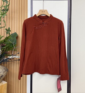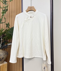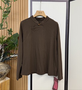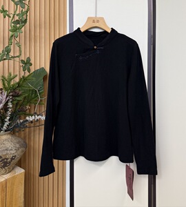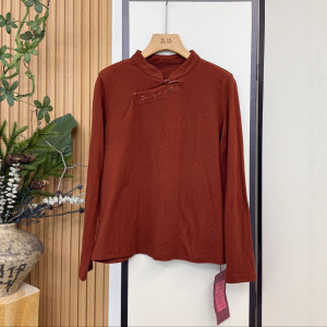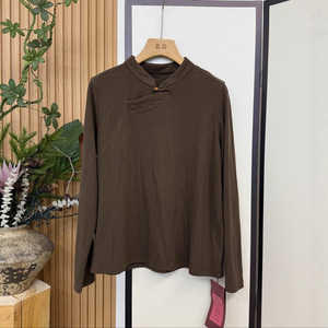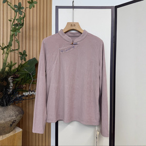 2025秋文艺复古风气质显瘦立领珠扣刺绣打底衫百搭T恤内搭女2636