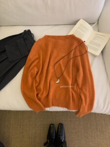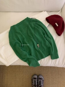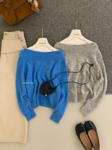 MZI STUDIO 秋冬韩版一字肩超宽松柔软舒适净色露肩上衣毛衣25760