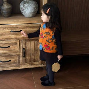中秋·国庆限定女童汉服马甲秋儿童重工提花圆领背心女孩抓周礼服