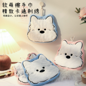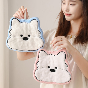 西高地动物造型珊瑚绒擦手巾浴室挂式吸水毛巾厨房可爱狗方巾跨境