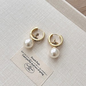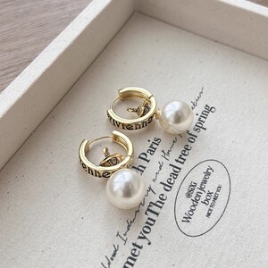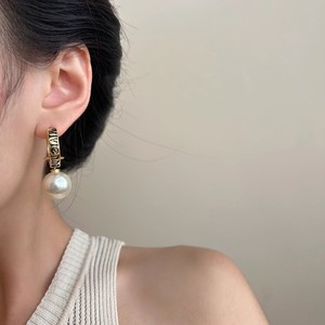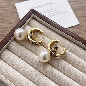 字母圆形珍珠吊坠耳扣轻奢气质小众耳环时尚百搭高级感耳饰批发女