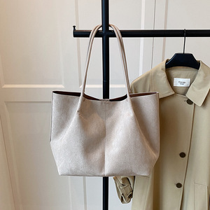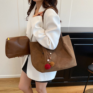 高级通勤麂皮绒大容量托特包小众设计百搭子母包女时尚复古单肩包