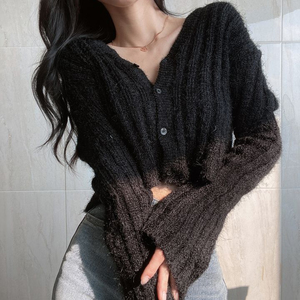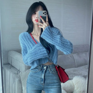 温柔风V领针织开衫女春秋2025新款气质慵懒宽松外穿显瘦短款上衣