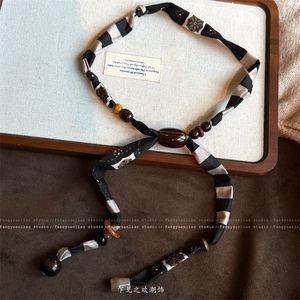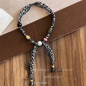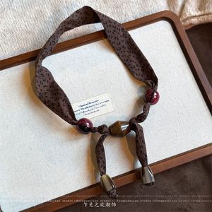 波西米亚风咖色腰果串珠丝巾项链女小众设计高级感毛衣链挂脖配饰
