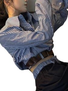 2025韩系chic蓝色条纹长袖衬衫女秋季时尚气质修身显瘦感开衫衬衣