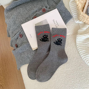 25秋冬新款袜子女点子纱学院风卡通动物中筒袜子诸暨袜子批发代发