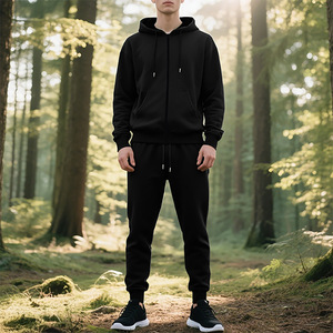 跨境美式重磅加绒秋冬男士宽松潮流抽绳连帽拉链开衫卫衣卫裤套装