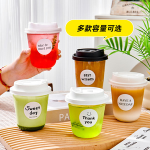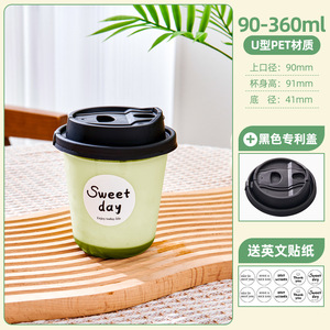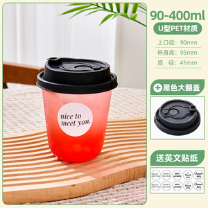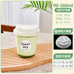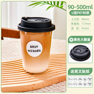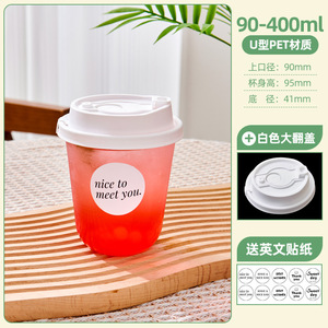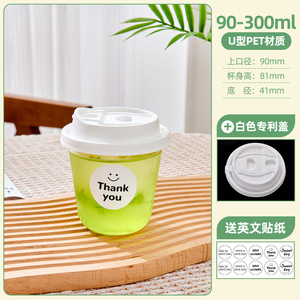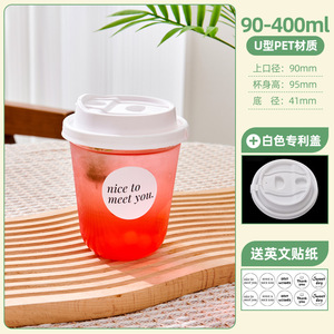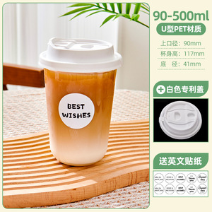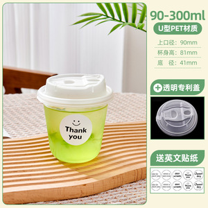 90口径一次性U型咖啡杯PET冷饮杯加厚高透奶茶杯子饮品杯商用带盖