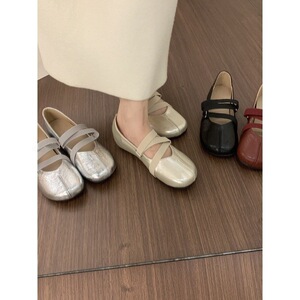 法式晚晚风香槟色圆头玛丽珍鞋子百搭不累脚内增高浅口芭蕾单鞋女