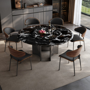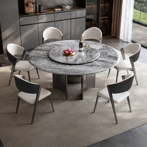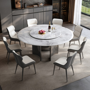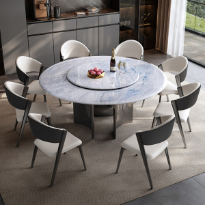 岩板餐桌现代简约超晶石圆桌意式极简风轻奢高端餐桌椅高级感家用