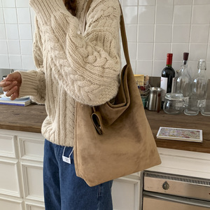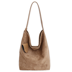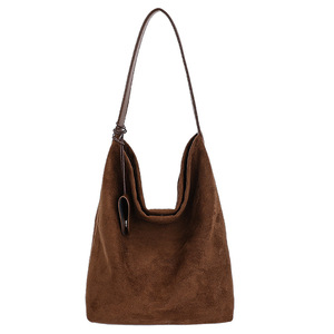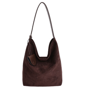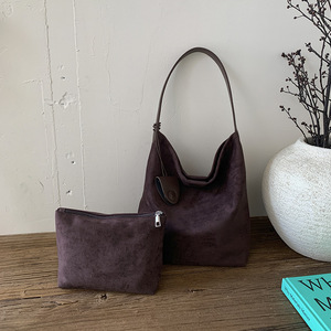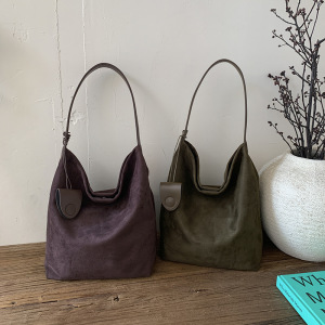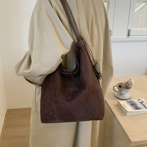 松弛感大容量包包女2025秋冬新款复古通勤女士单肩包麂皮绒托特包