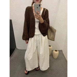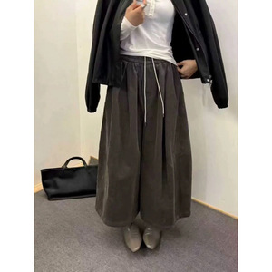 韩系复古灯芯绒八分裤中裤女2025秋季新款高腰抽绳显瘦休闲阔腿裤