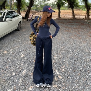 慕韩舍 2025美式复古圆领修身显瘦百搭垂感运动休闲基础套装女秋