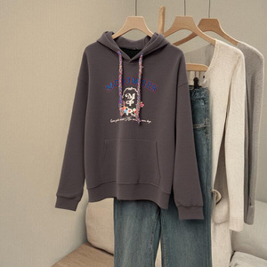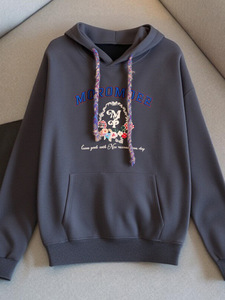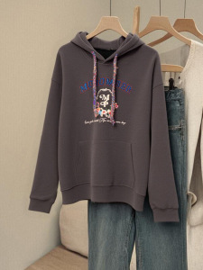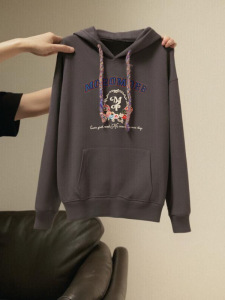 美式深灰色连帽带帽套头卫衣女春秋秋季oversize帽衫早秋2025新款