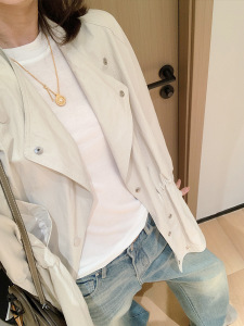 北欧纸皮皮衣!早秋私服chao薄皱感皮衣外套翻领收腰夹克