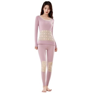 女士保暖内衣蕾丝花边圆领打底衫加绒德秋冬少女秋衣秋裤贴片套装