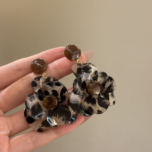 银针树脂晕染花朵吊坠耳环轻奢高级感耳钉复古小众时尚耳坠耳饰女