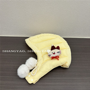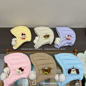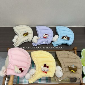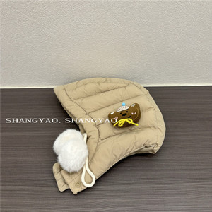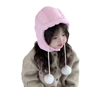 儿童帽子冬季防风夹棉保暖雷锋帽男女宝宝护耳帽挂球防风套头帽潮