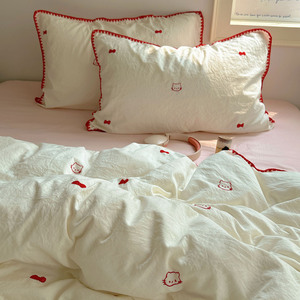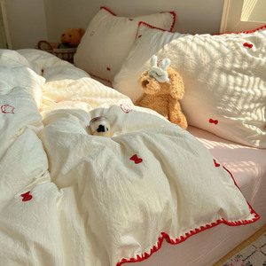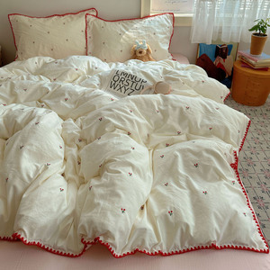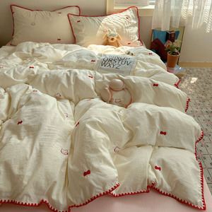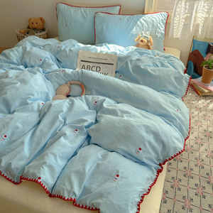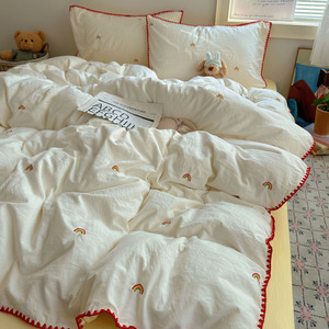 A类床上四件套纯棉全棉2025新款刺绣被套床单被罩学生宿舍三件套3