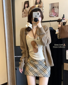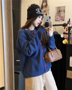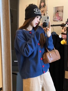韩版简约长袖毛衣外套女秋季2025新款针织衫休闲爱心纽扣宽松上衣