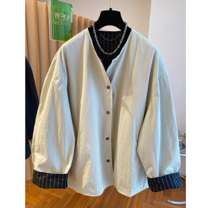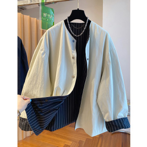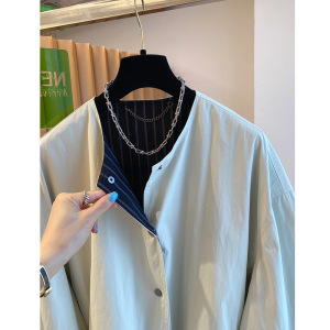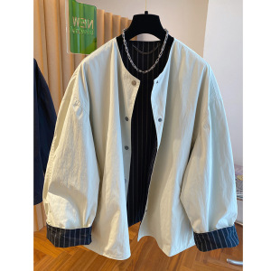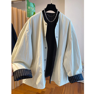 高JI感两面穿外套女春秋装2025新款宽松休闲百搭无领风衣夹克上衣