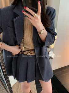 MUKOK 诺丁山学院~ 设计感小众廓形西装外套百褶半身裙时尚套装