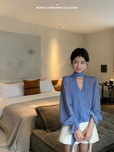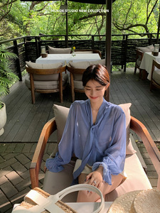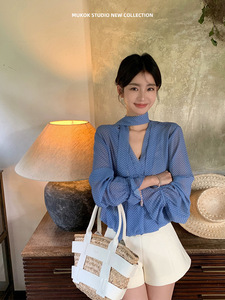 MUKOK “南法夏日”设计感松紧下摆浪漫轻薄印花衬衫