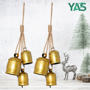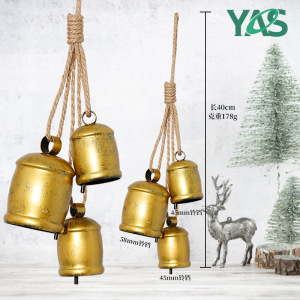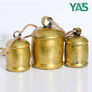 亚马逊热卖做旧铁皮桶铃铛圣诞壁挂麻绳铃铛装饰品复古铁艺牛铃铛