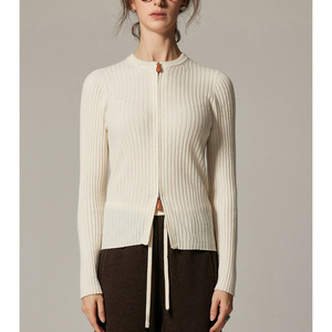 设计感双头拉链山羊绒针织开衫女2025年秋季新款圆领长袖纯色上衣