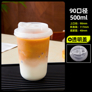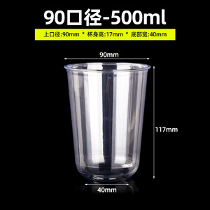 一次性U型PET冷饮杯咖啡杯加厚高透奶茶杯子90口径饮品杯商用带盖