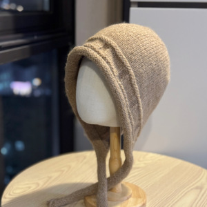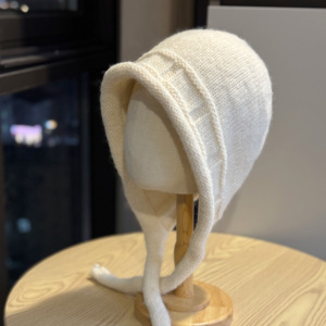 新款大头围帽子女秋冬季防风毛线帽绑带护耳帽新款保暖防寒针织帽
