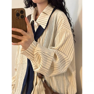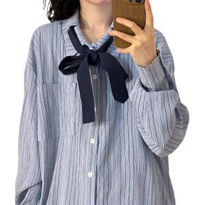 肌理感条纹宽松休闲领带单排扣衬衫2025新款上衣女春秋季计感小衫