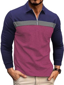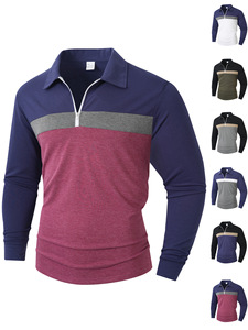 跨境男装时尚休闲拼色长袖拉链亨利衫 亚马逊秋冬男式翻领休闲POL
